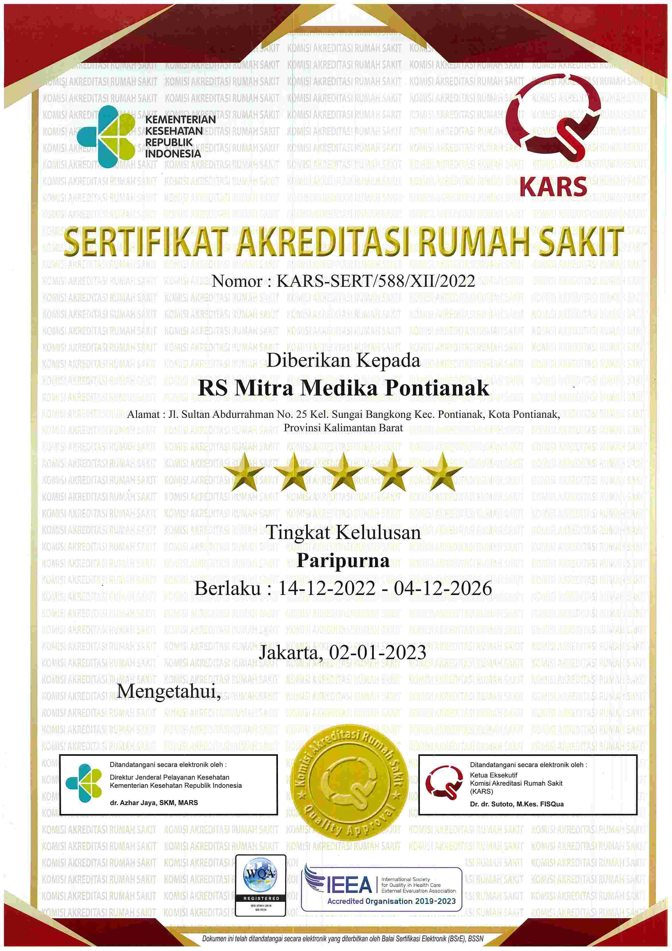 "Menjadi Rumah Sakit dengan Layanan Kesehatan yang Handal, Terpercaya, dan Professional di Pontianak dan Kalimantan Barat"